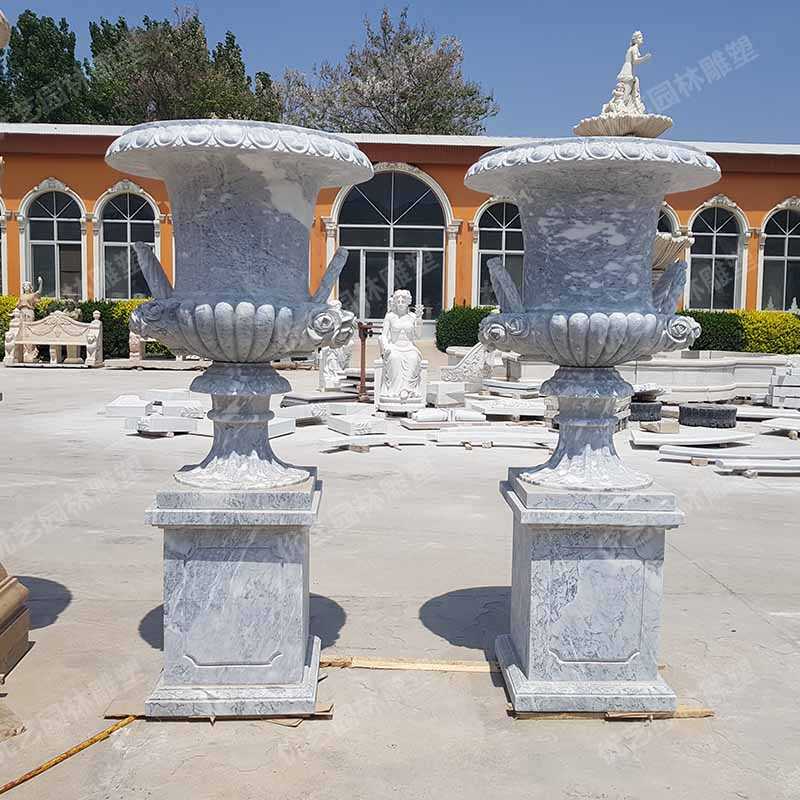 手工雕刻而成的大理石花盆洞石花盆等天然石花盆不僅可以用做栽樹種花的容器,而且能直接起到園林或庭院裝潢的作用,