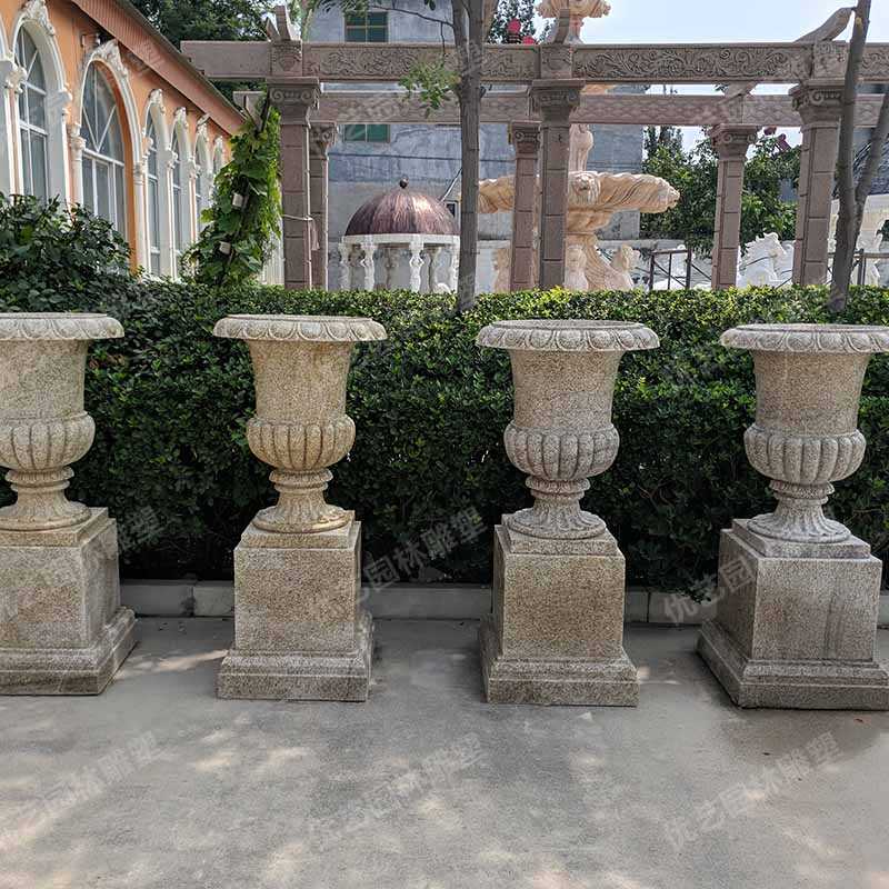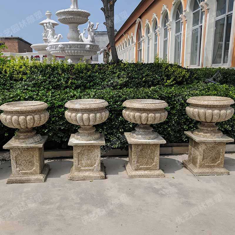 室內的景觀石雕花盆的典型尺寸為高20到36英寸,優藝雕塑用仔細挑選的大理石花崗巖或玉石等