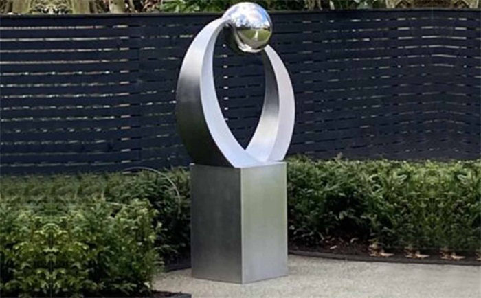 這一不銹鋼雕塑有三個部分組成,其中彎曲的不規則弧形在球的上下兩端各有一個,樹立起來便形成了一個十分和諧的畫面。而且高度拋光的光亮的外表為不銹鋼雕塑增添了現代感和美感。尤其是在陽光的照射下,雕塑的表面就像一面鏡子一樣,十分漂亮。