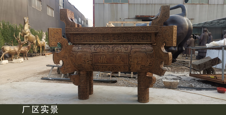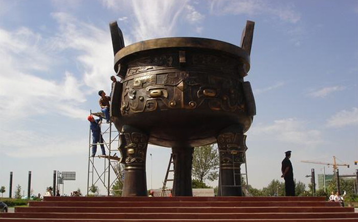 大型銅鼎雕塑是我國(guó)青銅文化時(shí)期的代表,鼎在古代被視為立國(guó)重器,是權(quán)力的象征。直到現(xiàn)在,人們?nèi)匀挥幸环N鼎崇拜的意識(shí),“鼎”字也被賦予“顯赫”、“ 尊貴”、“盛大”等引申意義,如:一言九鼎、大名鼎鼎、鼎盛時(shí)期、鼎力相助,等等。鼎又是旌功記績(jī)的禮器,周代的國(guó)君或王公大臣在重大慶典或接受賞賜時(shí)都要鑄鼎,以旌表功績(jī),記載盛況。