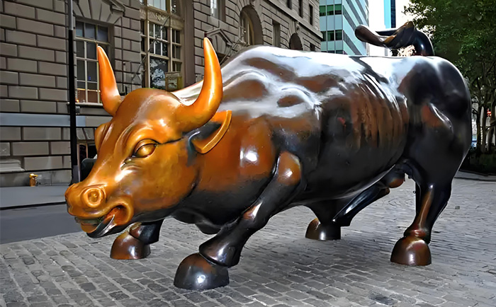 紐約曼哈頓的華爾街銅牛,無疑是全球最具影響力的銅牛雕塑之一。這尊由意大利裔藝術(shù)家阿爾圖羅?迪?莫迪卡創(chuàng)作于 1989 年的作品,重達(dá) 3.2 噸,以肌肉虬結(jié)的軀體、昂首前沖的姿態(tài),成為 “牛市” 的象征。其誕生背景頗具傳奇色彩:在 1987 年美股崩盤后,藝術(shù)家自掏腰包 36 萬美元鑄造銅牛,連夜安放在紐約證券交易所前的圣誕樹下,寓意 “經(jīng)濟(jì)復(fù)蘇”。盡管初期因 “非法放置” 引發(fā)爭議,但民眾對它的熱愛最終讓其落戶于百老匯大街,成為紐約的城市名片。2009 年,中國國旗首次在銅牛旁升起,見證了中美關(guān)系的深化;而 2019 年的搬遷計劃,則引發(fā)了全球?qū)ζ湮幕瘍r值的再思考。這尊銅牛不僅是金融市場的晴雨表,更傳遞著逆境中昂揚(yáng)向上的信念。